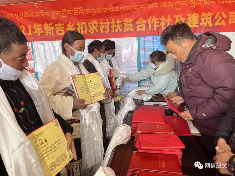 圖為西藏自治區(qū)那曲市班戈縣新吉鄉(xiāng)扣求村扶貧合作社及建筑公司2021年度分紅大會