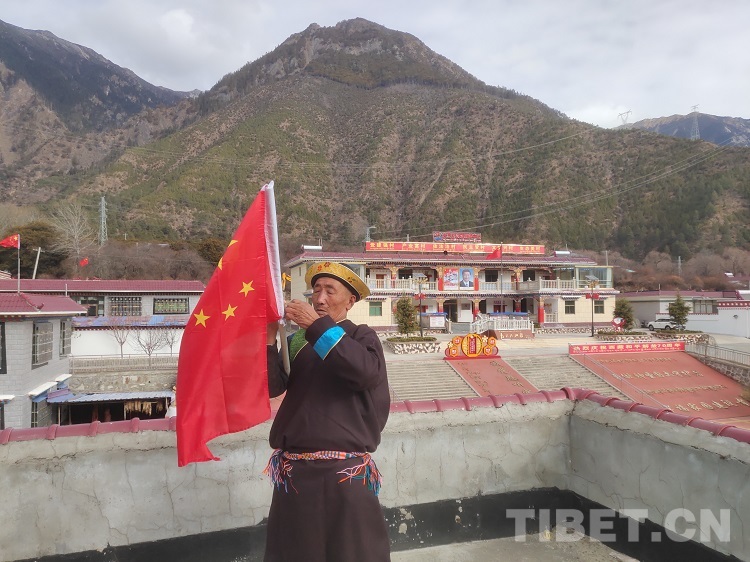 在中國共產(chǎn)黨成立100周年之際,公覺旦巴拿著自己買的國旗在村口開始“蹲點”,當有村民經(jīng)過村口時,他便上前發(fā)放新的國旗,督促大家:“中國共產(chǎn)黨成立100年即將到來,趕緊把家里的舊國旗換了,以嶄新的面貌迎接‘七一’,要知道,我們現(xiàn)在的美好生活都是黨給的!”村民們總是雙手接過國旗,一邊道謝,一邊微笑著點頭表示認同。
