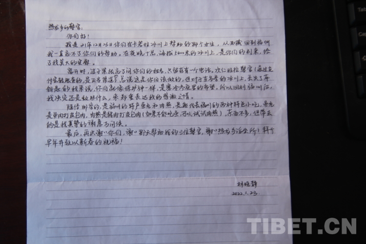2022年1月30日,西藏自治區(qū)日喀則市江孜縣公安局熱龍鄉(xiāng)派出所意外收獲一份特殊的春節(jié)禮物——一封從福州寄來的感謝信。