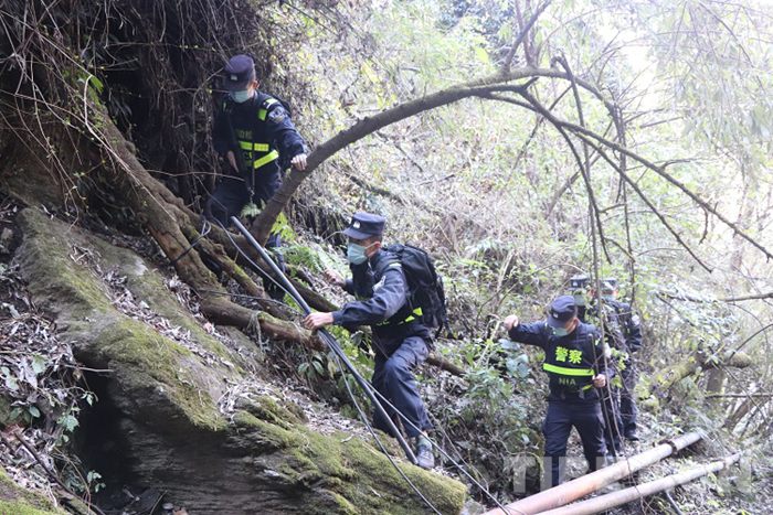 “大家注意安全,我走前面,你們跟著我的腳步走,相互之間照應(yīng)一下,發(fā)現(xiàn)情況及時(shí)匯報(bào)?!睂?duì)于友誼橋執(zhí)勤點(diǎn)負(fù)責(zé)人的尼瑪云旦來(lái)講,帶領(lǐng)戰(zhàn)友們巡山踏查是一天中最重要的工作之一。走在隊(duì)伍前面的尼瑪云旦用棍棒將枝繁葉茂的樹(shù)枝向兩邊拍打,帶領(lǐng)著大家一步一腳印的向上爬。