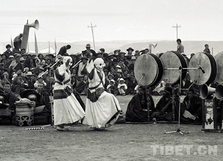 這是那曲賽馬會上的神舞表演(唐召明1987年攝)
