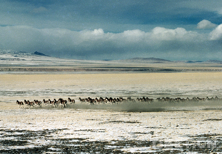 這是奔跑在羌塘國家級自然保護(hù)區(qū)的國家一級保護(hù)動物藏野驢(唐召明1987年攝)