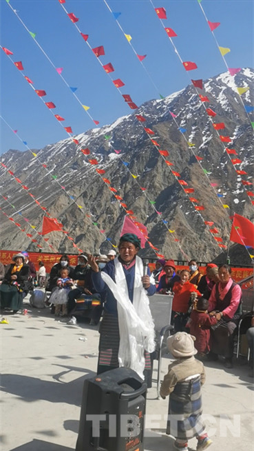 一大早,村民們匯聚在村委會,將一面鮮艷的五星紅旗冉冉升起,國歌在山谷中回蕩。村委會第一書記次仁扎西召集大家進(jìn)行了新舊對比,憶苦思甜,感恩黨的關(guān)懷、感恩國家支持。宣講員白瑪卓嘎主講團結(jié)的益處,引導(dǎo)鄰里鄉(xiāng)親團結(jié)和睦,自覺守護(hù)中華民族大團結(jié)。在陣陣歡呼與掌聲中,汝村文藝演出隊跳起具有本村特色的鍋莊舞,84歲的曲珍老阿媽唱響《北京的金山上》。有著26年黨齡的老黨員德吉大姐用一曲《再唱山歌給黨聽》表達(dá)不忘黨恩,永遠(yuǎn)跟黨走的決心。