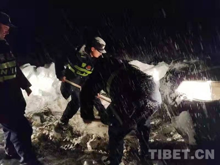 在前往救援途中,民警陸續(xù)又接到3起報警求助電話??梢源_定至少4輛車輛被困。救援工作刻不容緩,竹瓦根邊境派出所民警頂風冒雪,經過3個小時的艱難長途跋涉,克服高海拔缺氧,道路側滑等危險和困難,及時趕到事故現場開展救援。截至4月2日凌晨3點30分,竹瓦根邊境派出所民警先后救助被困車輛4臺,救助被困群眾8人。在護送返回途中,一行人員又遭遇雪崩,道路受阻。移民警察和當地養(yǎng)護段工作人員共同努力,用2個小時,打通了一條“生命大通道”,成功將被困群眾和車輛安全轉移。