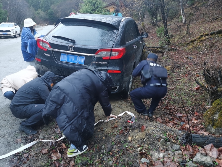 “我們是第一次遇到這種情況,不知道怎么辦,只有請求你們幫助!”當(dāng)?shù)亟诮涤贻^多、道路濕滑,兩名廣東籍女游客在南伊風(fēng)景區(qū)內(nèi)游玩返回途中操作不慎,導(dǎo)致車輛發(fā)生側(cè)滑,撞在路邊石頭上,無法自行脫困。不熟悉當(dāng)?shù)厍闆r的游客,在雨中焦急無助,撥打報(bào)警求助。
