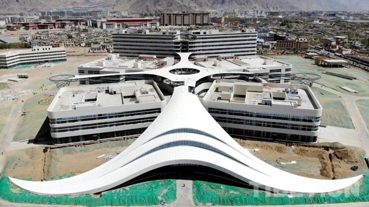 中國西藏網(wǎng)訊 挖掘機(jī)的轟鳴聲、鋼管的碰撞聲,走進(jìn)西藏自治區(qū)醫(yī)院項(xiàng)目施工現(xiàn)場,一派忙碌的景象。從空中俯瞰,建設(shè)中的西藏自治區(qū)醫(yī)院外形宛如一朵格?;ǎ壳罢M(jìn)行室內(nèi)裝修和機(jī)電安裝。