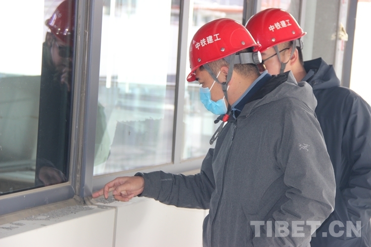 圖為張磊(左)和同事對(duì)西藏自治區(qū)醫(yī)院項(xiàng)目施工開展現(xiàn)場檢查