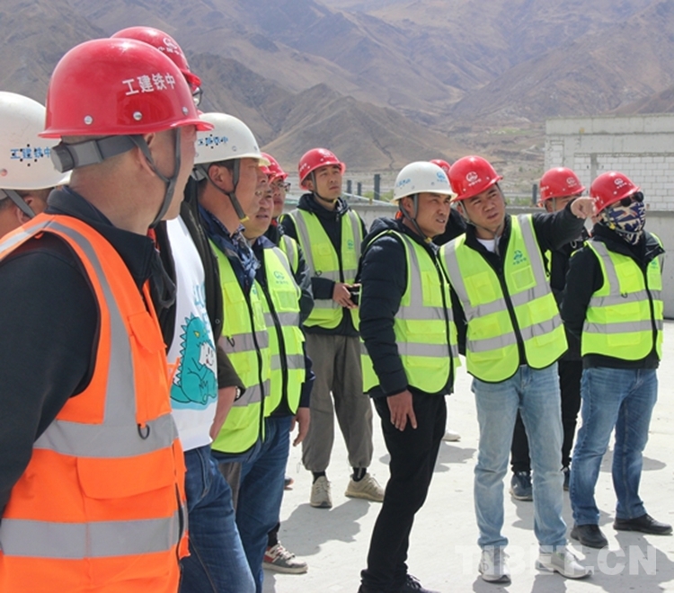 圖為張磊(右二)帶領(lǐng)施工人員在西藏自治區(qū)醫(yī)院項(xiàng)目施工開展現(xiàn)場檢查