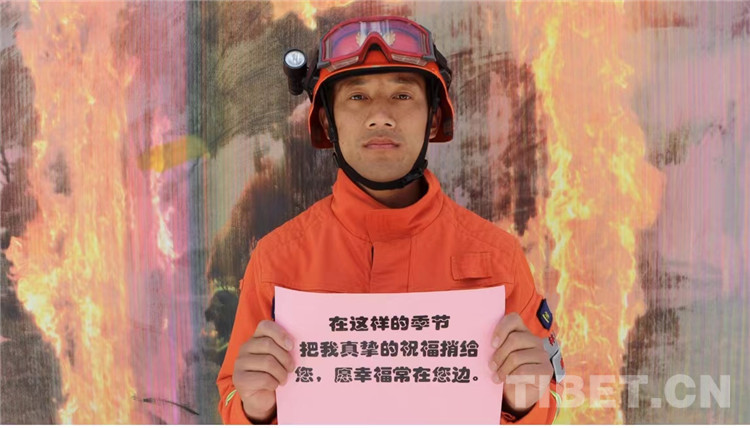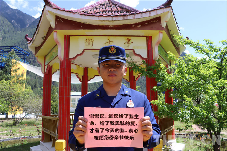 藏族消防員邊瑪桑堆對他母親說:“母親節(jié)到了,我祝媽媽節(jié)日快樂!媽媽,扎西德勒!”