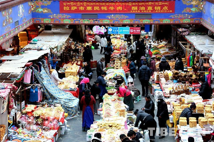 圖為藏歷水虎新年來臨前拉薩八廓商城內(nèi)各族群眾購(gòu)買“年貨”歡度新年 攝影:王佳豪