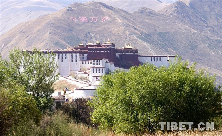 圖為從拉魯濕地看布達(dá)拉宮和“祖國(guó)萬歲”山 攝影:王媛媛