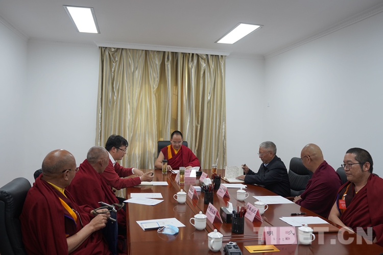 中國西藏網(wǎng)訊 連日來,全國政協(xié)常委、中國佛教協(xié)會(huì)副會(huì)長、中國佛教協(xié)會(huì)西藏分會(huì)會(huì)長班禪額爾德尼·確吉杰布,分別與藏傳佛教各教派高僧、西藏佛學(xué)院經(jīng)師和西藏大學(xué)、西藏社科院專家學(xué)者舉行座談,深入學(xué)習(xí)貫徹習(xí)近平總書記關(guān)于宗教工作的重要論述和我國宗教中國化的一系列重要講話精神,為推進(jìn)藏傳佛教中國化、實(shí)現(xiàn)藏傳佛教與社會(huì)主義社會(huì)相適應(yīng)共商共研、凝心聚力。