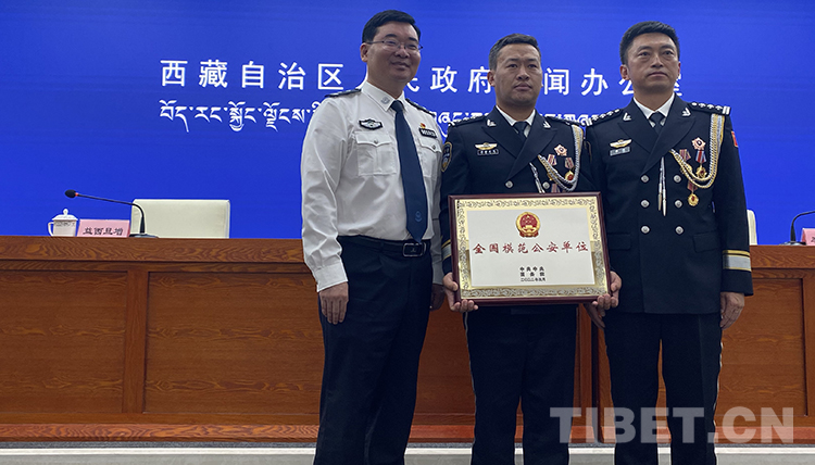 中國西藏網(wǎng)訊 6月20日,西藏公安機(jī)關(guān)深入學(xué)習(xí)宣傳貫徹全國公安系統(tǒng)英雄模范立功集體表彰大會精神新聞發(fā)布會在西藏自治區(qū)人民政府新聞辦公室舉行?!霸诰薮蟮臉s譽(yù)面前,我們交警大隊全體民輔警無比光榮、無比驕傲、無比自豪,倍受鼓舞、倍感振奮。”發(fā)布會上,被黨中央、國務(wù)院授予“全國模范公安單位”榮譽(yù)稱號的那曲市安多縣公安局交警大隊代表其美永忠說。