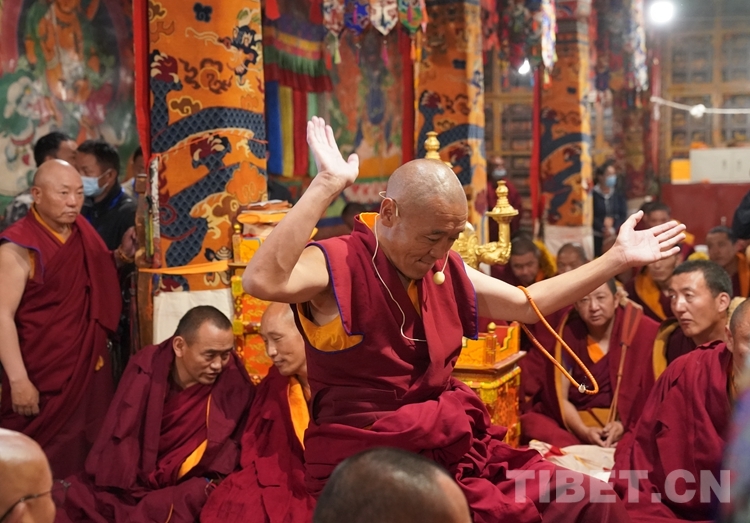 圖為2023年度西藏自治區(qū)藏傳佛教學(xué)經(jīng)僧人晉升格西拉讓巴學(xué)位夏季預(yù)考現(xiàn)場 攝影:王淑