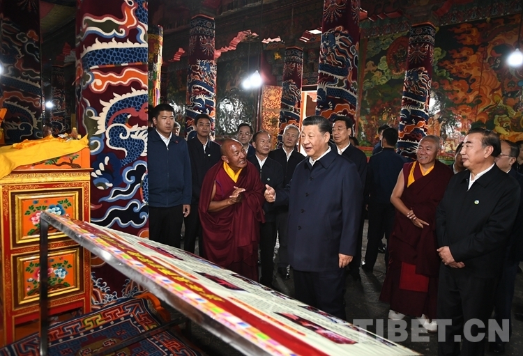 習(xí)近平總書記在哲蚌寺仔細(xì)察看了措欽大殿,認(rèn)真聽取西藏自治區(qū)宗教工作開展情況和哲蚌寺管委會(huì)加強(qiáng)創(chuàng)新寺廟管理工作情況的匯報(bào),并在大殿廣場(chǎng)發(fā)表重要講話。