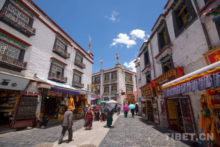 這里是拉薩古城中心,是拉薩經(jīng)濟(jì)、文化、民族手工藝和風(fēng)土人情的集合地,自古便吸引了大量外地商人來此謀生。千百年間借助繁忙的商貿(mào)往來,各民族之間實現(xiàn)深入交往、交流、交融。如今,“老字號”藏裝店、藏餐館、茶館,與特色文創(chuàng)商店、具有西藏特色的新式茶飲連接起八廓街的傳統(tǒng)與現(xiàn)代,延續(xù)千年八廓街的繁榮。