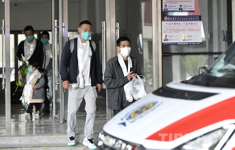 圖為8月15日晚,拉薩市方艙醫(yī)院首批5名新冠肺炎患者出艙 攝影:李林