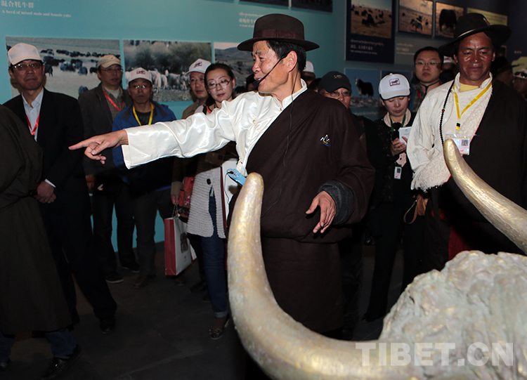 這是西藏牦牛博物館試運(yùn)行時(shí),吳雨初臨時(shí)擔(dān)當(dāng)講解員為觀(guān)眾作講解(唐召明提供,2014年5月18日攝)