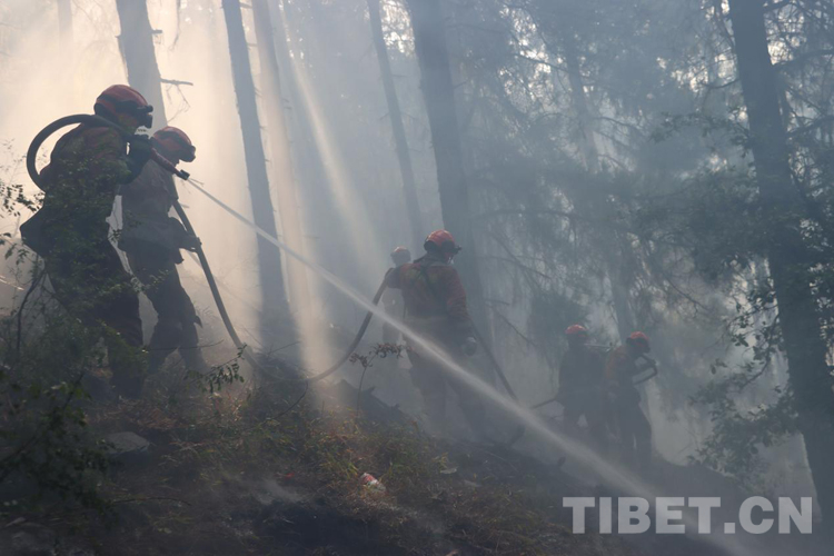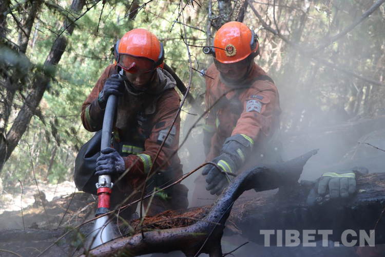 火場(chǎng)上,不說(shuō)有感天動(dòng)地的故事,但是那種“無(wú)畏火魔、不怕犧牲、舍我其誰(shuí)、團(tuán)結(jié)協(xié)作”的故事卻到處可見。那天,我們?cè)诮泳?,第一時(shí)間趕赴現(xiàn)場(chǎng),當(dāng)看到一條長(zhǎng)長(zhǎng)的火線猶如一條蜿蜒的巨龍盤旋在空檔村山腰,火舌在大風(fēng)助威下翻滾著向南側(cè)撲去時(shí),飛哥和我各帶領(lǐng)10名黨員骨干以南北兩翼夾擊的陣勢(shì)迎戰(zhàn)火魔。在高達(dá)2800米的原始林區(qū),夜里溫度接近-5℃,槍頭手高琪已全身上下濕透并伴隨冰片的出現(xiàn),隱約透著讓人冷顫的寒光,顫抖的身體讓槍頭不斷左搖右擺,但他毅然肩扛槍頭,勇斗火魔。撲救完畢后,剛要準(zhǔn)備休整,中隊(duì)接到殲滅山頂火點(diǎn)的任務(wù),火情就是命令,指戰(zhàn)員背著沉重的裝備在近70-80度的亂石陡坡上,抓著樹枝一步步向上攀爬,16年兵齡的王建紅在爬山過(guò)程中使勁喘息,即使空氣中彌漫著飛舞的灰,也為吸取更多的氧氣保持體力;接近山頂時(shí),一顆直徑約80cm的滾石從山頂滾落,體型弱小的二級(jí)消防士曹橋在緊促的避險(xiǎn)哨音中采取緊急避險(xiǎn)措施成功躲避,滾石與他擦肩而過(guò),但危險(xiǎn)的環(huán)境未能抑制他戰(zhàn)斗的決心。中隊(duì)指戰(zhàn)員暢談此次滅火作戰(zhàn)感受時(shí),都紛紛笑言:“我們從海拔2300米打到了3700米,相當(dāng)于從察隅到了拉薩?!?1日,中隊(duì)轉(zhuǎn)戰(zhàn)火場(chǎng)西南線,此時(shí)經(jīng)過(guò)5天的連續(xù)奮戰(zhàn),指戰(zhàn)員的思考能力和興奮的感覺消失殆盡,只剩下機(jī)械式行走的軀體,膝蓋有舊傷的戰(zhàn)斗班班長(zhǎng)王明因?yàn)槌?fù)荷運(yùn)動(dòng)已疼痛難忍,但他在咬牙堅(jiān)持。班長(zhǎng)宋遠(yuǎn)金、扎西歐珠主動(dòng)擔(dān)當(dāng)不畏艱險(xiǎn),從不到2300多米的地方,背著滅火裝備和滿滿的水桶,爬到4000米的山頂排除隱患,清理煙點(diǎn)。