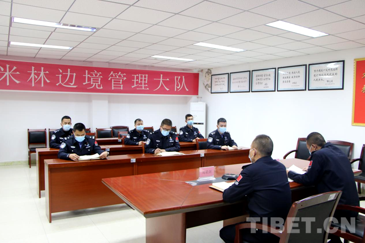 圖為米林邊境管理大隊民警專題學習黨的二十大精神報告會議 攝影:黃磊