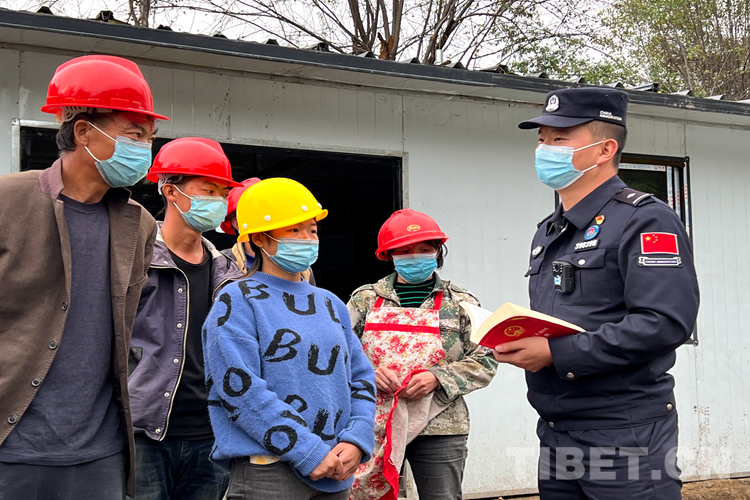 圖為派邊境派出所民警在工地向務(wù)工人員開展普法宣傳