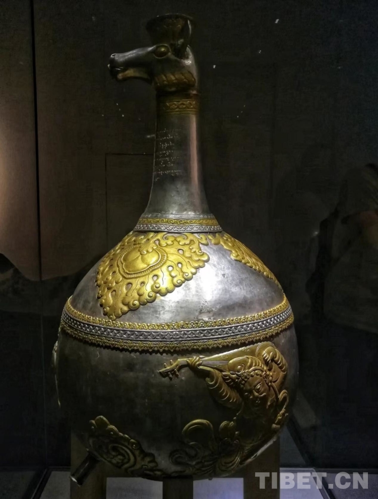 圖為唐代(吐蕃時期)獸首胡人紋鎏金銀瓶 攝影:李元梅