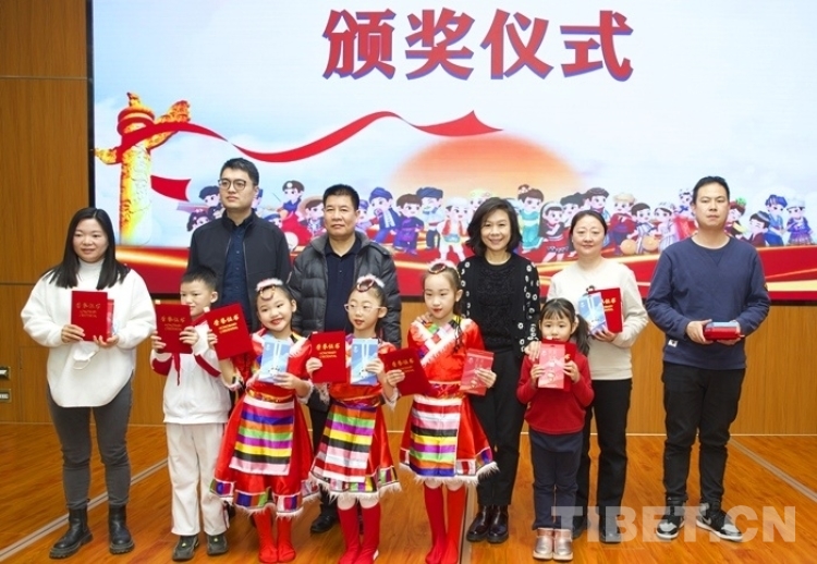 西藏文化博物館負(fù)責(zé)人扎呷、中國人民大學(xué)附屬中學(xué)第二分校校長龔月萍先后致辭。活動中,中國藏學(xué)研究中心西藏文化博物館向捐獻(xiàn)西藏主題作品的畫家吳茜女士頒發(fā)證書,并發(fā)布關(guān)于涉藏文物捐贈的倡議書。同時,為“童心永向黨,喜迎二十大”少年兒童書畫作品展的活動組織者、指導(dǎo)老師以及獲獎小作者頒發(fā)了獎品和證書。