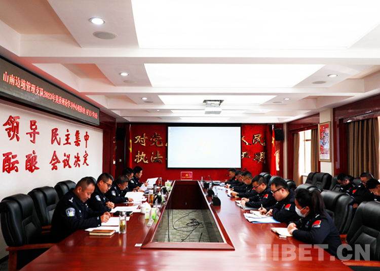 圖為山南邊境管理支隊召開黨委理論學(xué)習(xí)中心組(擴(kuò)大)學(xué)習(xí)會,深入學(xué)習(xí)兩會精神 鄭琦山 攝