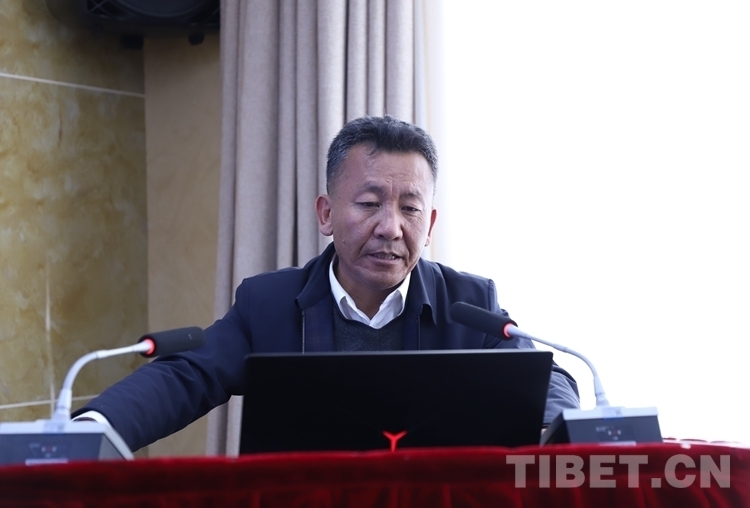 圖為項目負(fù)責(zé)人巴桑旺堆匯報項目執(zhí)行與管理方案