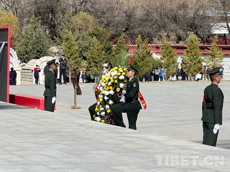 圖為軍警代表向革命先烈敬獻(xiàn)鮮花 攝影:德吉卓瑪