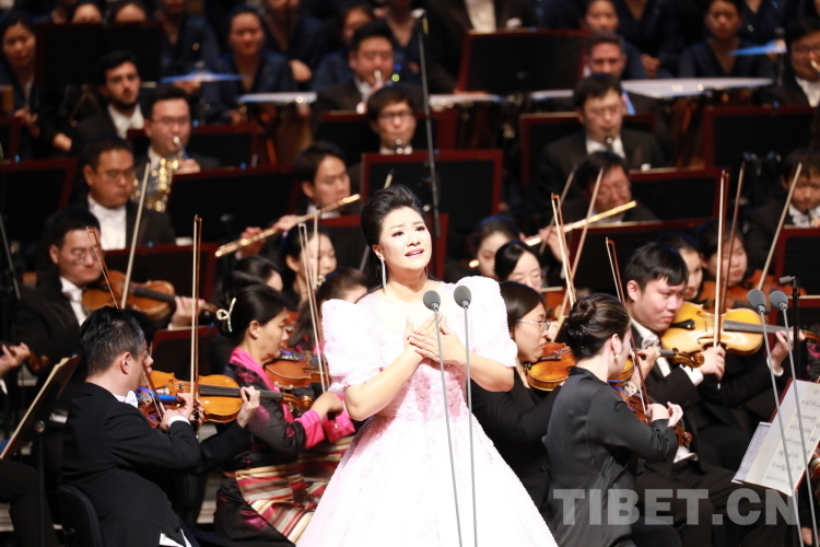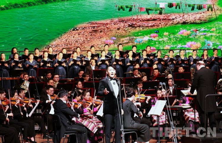 圖為中音歌唱家、國家一級演員霍勇,西藏自治區(qū)歌舞團(tuán)青年女高音次仁央宗領(lǐng)合唱《美麗的西藏 可愛的家鄉(xiāng)》 攝影:劉莉