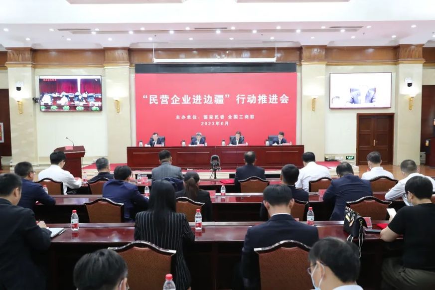 會(huì)議指出,“民營(yíng)企業(yè)進(jìn)邊疆”行動(dòng)是國(guó)家民委、全國(guó)工商聯(lián)以習(xí)近平新時(shí)代中國(guó)特色社會(huì)主義思想為指導(dǎo),深入貫徹落實(shí)黨的二十大精神和習(xí)近平總書記關(guān)于加強(qiáng)和改進(jìn)民族工作的重要思想、關(guān)于民營(yíng)經(jīng)濟(jì)發(fā)展的重要論述精神,動(dòng)員引導(dǎo)廣大民營(yíng)企業(yè)積極參與邊疆地區(qū)建設(shè)的重要舉措。要認(rèn)真貫徹落實(shí)黨中央關(guān)于“加強(qiáng)邊疆地區(qū)建設(shè),推進(jìn)興邊富民、穩(wěn)邊固邊”重大決策部署,深入貫徹落實(shí)習(xí)近平總書記近日在內(nèi)蒙古考察時(shí)所作重要講話精神,堅(jiān)持以鑄牢中華民族共同體意識(shí)為主線,站在強(qiáng)國(guó)建設(shè)、民族復(fù)興的戰(zhàn)略高度加強(qiáng)邊疆地區(qū)建設(shè),扎實(shí)推動(dòng)“民營(yíng)企業(yè)進(jìn)邊疆”行動(dòng),助力邊疆民族地區(qū)高質(zhì)量發(fā)展,讓各族人民實(shí)實(shí)在在感受到推進(jìn)共同富裕在行動(dòng)、在身邊。