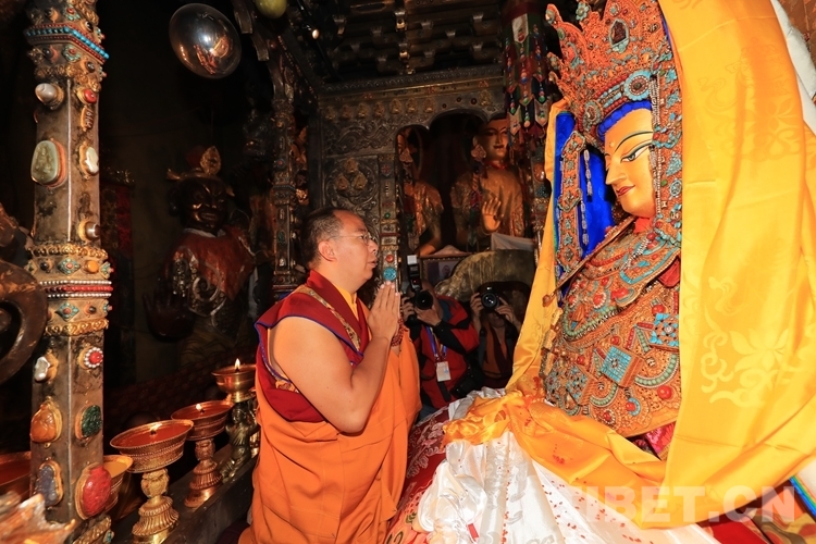 圖為班禪朝拜釋迦牟尼十二歲等身佛像 攝影:格桑