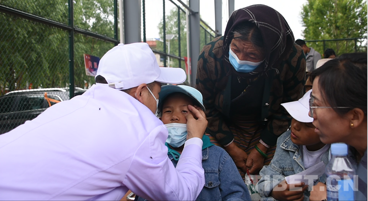 年過(guò)花甲的嘎瑪央吉帶著上小學(xué)的孫女走進(jìn)義診區(qū),她是拉薩市尼木縣續(xù)邁鄉(xiāng)安崗村的村民,也是7月8日當(dāng)天義診活動(dòng)中患者之一?!拔一加嘘P(guān)節(jié)炎和骨質(zhì)增生,腸胃也不太好,而我今天主要來(lái)檢查我孫女的眼睛,她常流眼淚,總是跟我們說(shuō)眼睛不舒服,我們一家子人都很擔(dān)心。聽(tīng)說(shuō)今天來(lái)鄉(xiāng)里義診的醫(yī)生都是來(lái)自全國(guó)各地的知名專家,特地來(lái)看看。”老人向醫(yī)生及鄉(xiāng)里的翻譯人員講述自己及孫女的狀況。