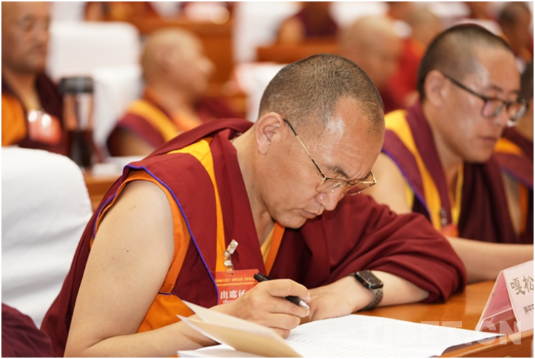 在安排部署下一步重點工作時,班禪表示,推動自我變革,開展教義教規(guī)闡釋。發(fā)揮藏傳佛教界人士在推進中國化中的主體作用,推動沿著中國化方向健康傳承,引導(dǎo)藏傳佛教界人士切實增強自我變革的思想和行動自覺,以社會主義核心價值觀為引領(lǐng),在保持基本信仰、核心教義的前提下,促進教義教規(guī)、管理制度、禮儀習(xí)俗、行為規(guī)范等方面逐步形成中國特色。實施藏傳佛教教義教規(guī)闡釋工程。引導(dǎo)藏傳佛教界對教義教規(guī)、藏傳佛教經(jīng)典選優(yōu)擇重、去粗取精、推陳出新,作出與中國國情、中華文化、中國特色社會主義相適應(yīng)的通俗易懂、與時俱進地闡釋。引導(dǎo)藏傳佛教界人士在闡釋經(jīng)典、講經(jīng)說法、日常生活中學(xué)習(xí)使用國家通用語言文字,開展經(jīng)典翻譯、選編、注釋,挖掘教義思想中積極因素。爭做精進修學(xué)、推進藏傳佛教健康傳承的好僧尼,爭做守法遵規(guī)、弘揚濟世利民優(yōu)良傳統(tǒng)的好僧尼,爭做立場堅定、堅決維護祖國統(tǒng)一和民族團結(jié)的好僧尼。