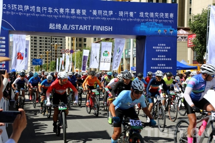圖為2023年環(huán)拉薩自行車大賽序幕賽暨“美麗拉薩·騎行看”堆龍德慶繞圈賽鳴槍開(kāi)賽 攝影:王佳豪