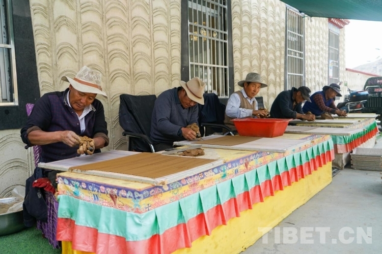 “您現(xiàn)在所在的這家藏香公司,是我們吞巴鎮(zhèn)的村集體經(jīng)濟(jì)企業(yè),它為我們吞巴鎮(zhèn)脫貧攻堅做了巨大的貢獻(xiàn)。”尼木縣曾經(jīng)是國家級貧困縣,自然條件差。2016年,作為藏香發(fā)源地的吞巴鎮(zhèn)吞達(dá)村,在村黨支部書記普布次仁的帶動下,通過村黨總支入股51.9萬元、37戶建檔立卡貧困戶每戶入股1萬元的方式,建立起了村集體經(jīng)濟(jì)合作社——吞巴藏香凈土產(chǎn)業(yè)有限公司。2022年,公司產(chǎn)值達(dá)到150萬元,總收入45萬元,凈收入27萬元,發(fā)放員工工資19.8萬元,讓建檔立卡貧困戶增收致富不返貧。也正是因為村集體經(jīng)濟(jì),讓吞巴鎮(zhèn)的藏香逐步走上了標(biāo)準(zhǔn)化、市場化、規(guī)模化的道路。