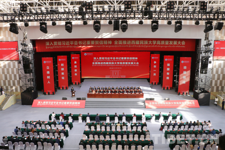 圖為深入貫徹習(xí)近平總書(shū)記重要賀信精神、全面推進(jìn)西藏民族大學(xué)高質(zhì)量發(fā)展大會(huì)現(xiàn)場(chǎng)