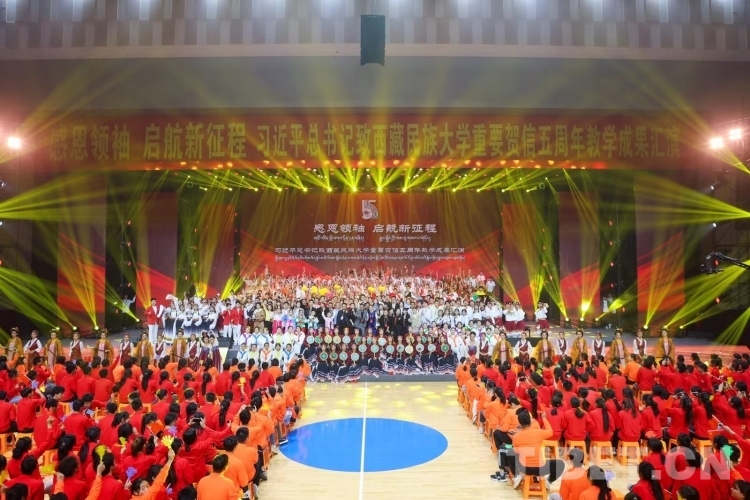 圖為習(xí)近平總書(shū)記致西藏民族大學(xué)重要賀信五周年教學(xué)成果匯演現(xiàn)場(chǎng)