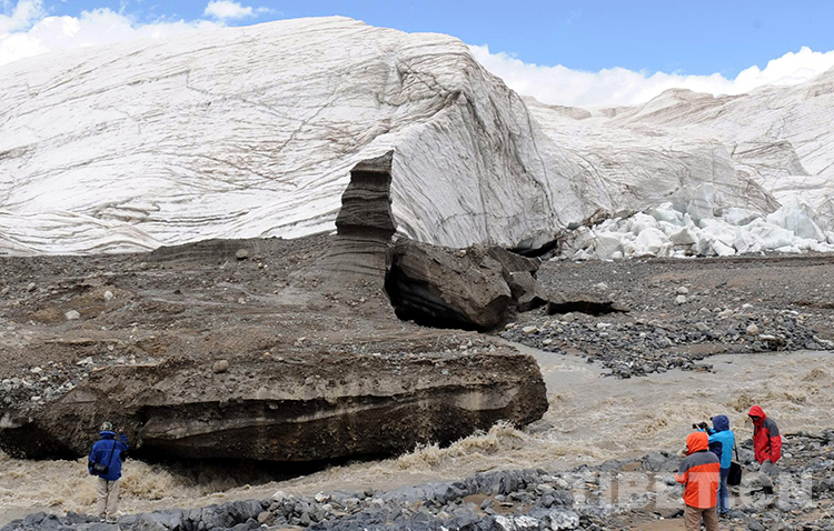 在雙湖縣境內的普若崗日冰川,游客們在拍照游覽(唐召明2009年8月1日攝)