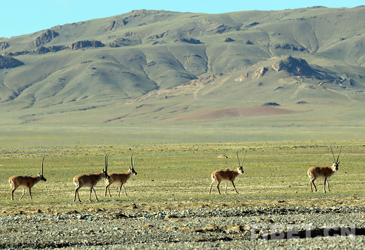 在羌塘國家級自然保護區(qū)悠閑漫步的國家一級保護動物藏羚羊(唐召明2019年9月20日攝)