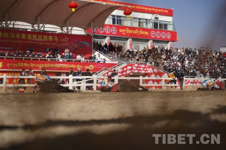 中國西藏網(wǎng)訊 2月12日上午,藏歷木龍新年初三民族傳統(tǒng)馬術(shù)表演暨民族賽馬活動(dòng)在拉薩賽馬場(chǎng)舉行。此次活動(dòng)包括民族賽馬和馬術(shù)表演。其中,民族賽馬包括3000米、5000米、8000米三個(gè)項(xiàng)目,馬術(shù)表演共有18個(gè)大項(xiàng)、20余個(gè)小項(xiàng)。馬術(shù)表演與民族賽馬穿插進(jìn)行。現(xiàn)場(chǎng)約8000名觀眾共同欣賞了精彩的馬術(shù)表演,觀看了激烈的速度賽馬,共慶佳節(jié)。