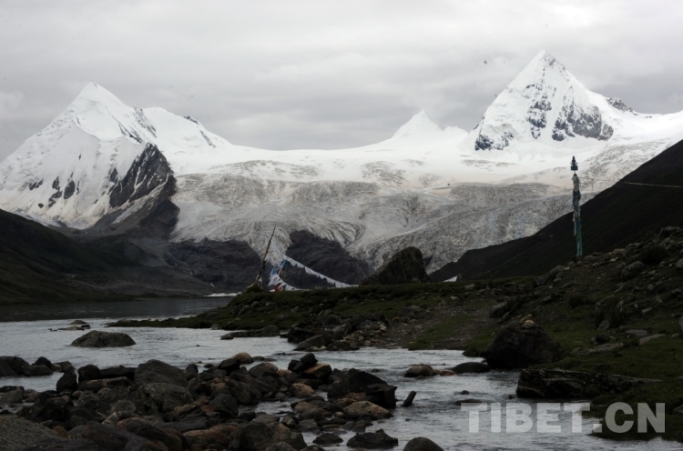 盛夏的薩普山頂冰雪皚皚、雨霧繚繞,山底花紅草綠、水草豐美,其最高主峰為6995米,也稱(chēng)“貢拉嘎布”。它既是喜馬拉雅山主峰北部的念青唐古拉山脈東段的最高峰,也是雪域高原原始苯教的神山之一。