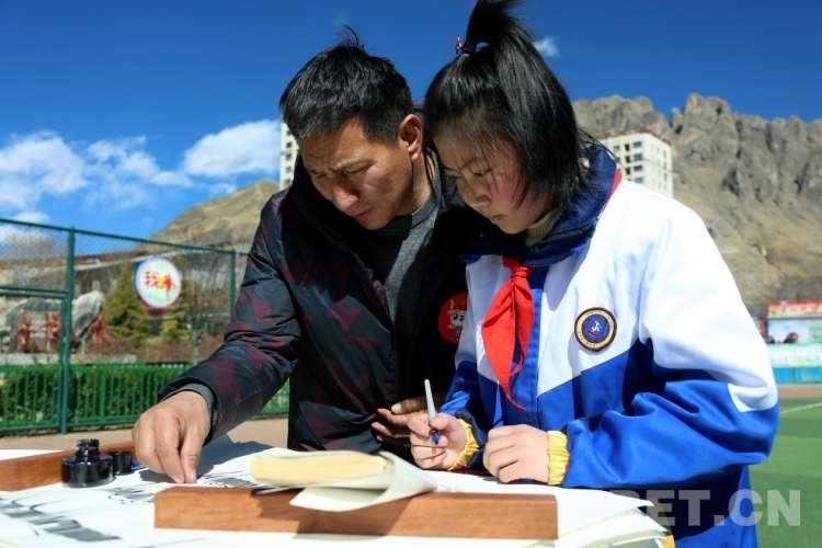 距離林瓊崗日間照料中心不遠(yuǎn)的東嘎小學(xué)里也是熱鬧非凡。西藏自治區(qū)教育廳、文聯(lián)、科協(xié)分別在這里開展“老西藏精神”宣講、科普大篷車進(jìn)校園、書法進(jìn)校園等志愿服務(wù)活動。