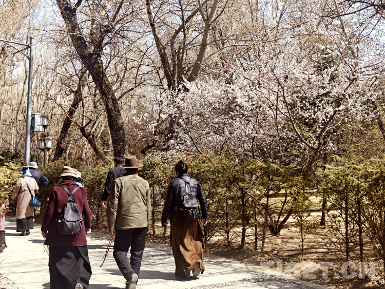 圖為3月19日,拉薩市民在布達(dá)拉宮腳下的宗角祿康公園內(nèi)漫步賞春景 攝影:次旦拉姆