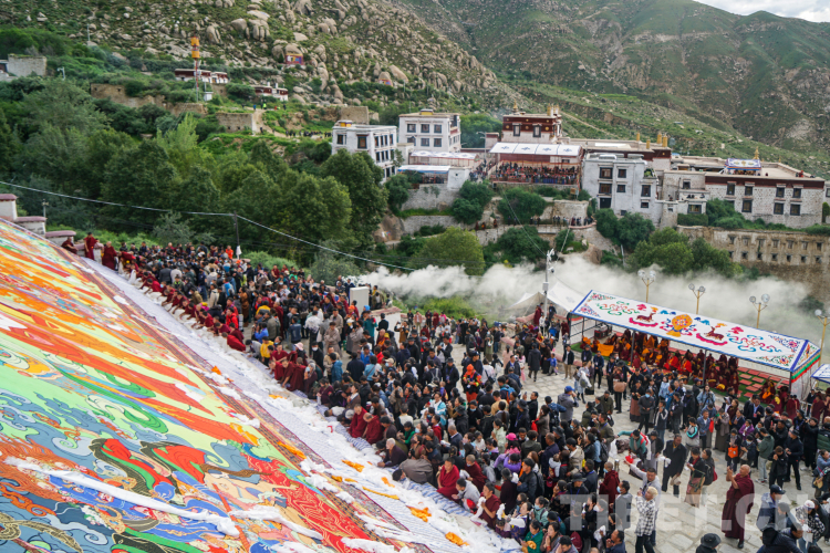 圖為2023年拉薩雪頓節(jié)哲蚌寺展佛現(xiàn)場。雪頓節(jié)距今已有近千年歷史,近年來雪頓節(jié)在各級政府的保護和發(fā)展中,已從單純的民俗文化節(jié)日成為集傳統(tǒng)展佛、體育競技、文藝匯演、經(jīng)貿(mào)洽談、商品展銷、旅游推介、民俗體驗等為一體的復合型節(jié)日。 攝影:趙振宇