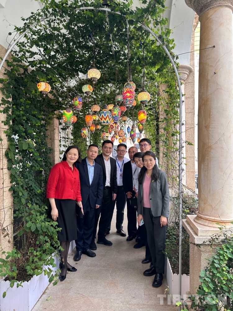 她親切地與帕洛扎用藏語(yǔ)交流,倆人一下子打開(kāi)了話匣子。帕洛扎后來(lái)告訴我們,讓他感到非常驚喜和意外的是,卓瑪姐的藏語(yǔ)竟然說(shuō)的如此標(biāo)準(zhǔn),是純正的拉薩話。只是學(xué)習(xí)了幾天藏語(yǔ)的我,僅能聽(tīng)清楚幾個(gè)詞的發(fā)音,??????????(西藏)、?????(拉薩)、?????????(藏族),但是從他們聊天的神色中,我能感受到那種對(duì)西藏的情懷與在異鄉(xiāng)見(jiàn)到老鄉(xiāng)的親切與激動(dòng)。我跟隨帕洛扎學(xué)了幾天藏語(yǔ),雖然僅會(huì)說(shuō)幾句簡(jiǎn)單的問(wèn)候語(yǔ),但還是鼓起勇氣用藏語(yǔ)向卓瑪老師問(wèn)候:“???????? ????????????????? ???????????????(老師,扎西德勒,我是呂靜)?!蔽业耐乱簿o跟著問(wèn)候:“????????????? ???????????????????????????????????????(您好,我的名字叫曲瑩益西)?!鼻撘嫖魇俏疫@位同事的藏族名字。幾句藏語(yǔ)的問(wèn)候一下子拉近了我們與卓瑪姐的距離,她驚喜又欣慰,原來(lái)我們都能講上幾句藏語(yǔ)。她還親切地勉勵(lì)我們,要多學(xué)多用藏語(yǔ),對(duì)工作也會(huì)有很大幫助。當(dāng)她得知身邊坐著的同事是寧波人時(shí),她還立馬切換寧波方言與對(duì)方聊天。原來(lái)卓瑪姐的母親是浙江寧波人,在家里都會(huì)講寧波話,而她的丈夫是葡萄牙人,她還能講葡萄牙語(yǔ)。具有極強(qiáng)語(yǔ)言天賦的她,在澳門(mén)這樣一個(gè)中西方文化匯聚的地方,作為澳門(mén)基金會(huì)行政委員會(huì)的一員,她也用自己的方式,不斷促進(jìn)中葡、藏澳等地經(jīng)濟(jì)、文化等方面的交流互促。