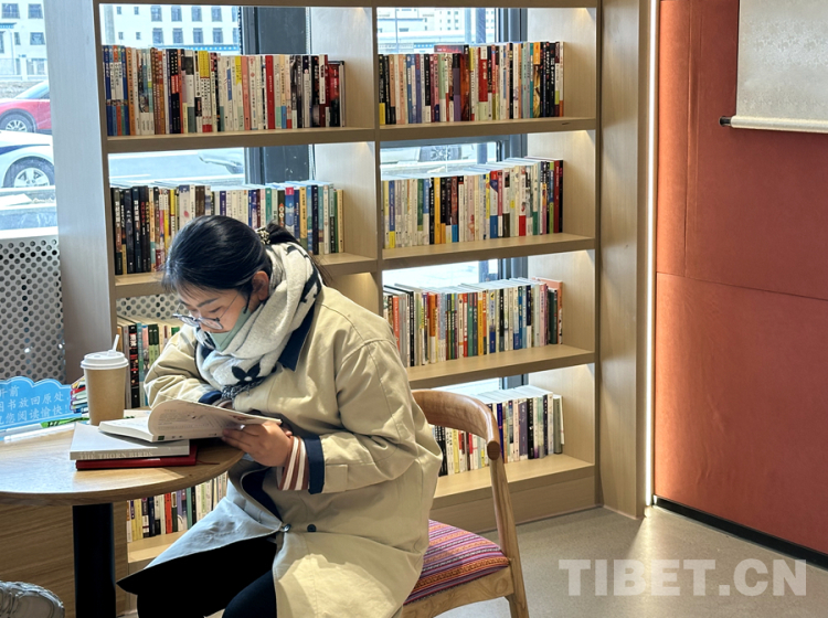 圖為4月23日,讀者在那曲市色尼區(qū)城市書房?jī)?nèi)閱讀 攝影:王楠