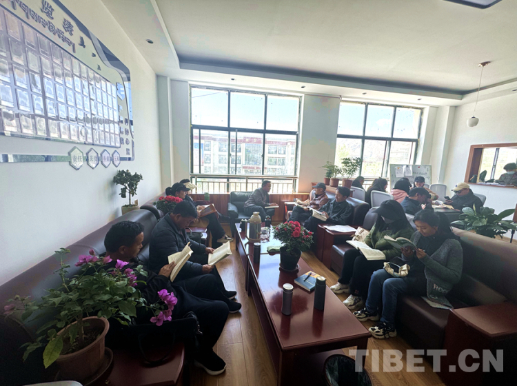 圖為4月23日,拉薩市尼木縣小學(xué)的教師們?cè)陂喿x書籍 攝影:倉(cāng)覺(jué)