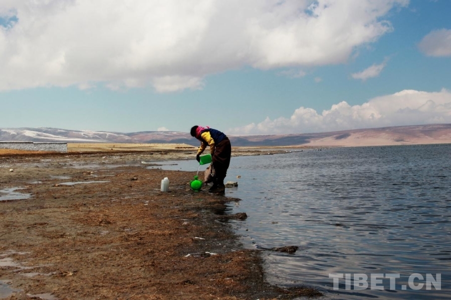 圖為群眾在位于西藏自治區(qū)阿里地區(qū)普蘭縣的瑪旁雍錯(cuò)汲水 攝影:劉莉